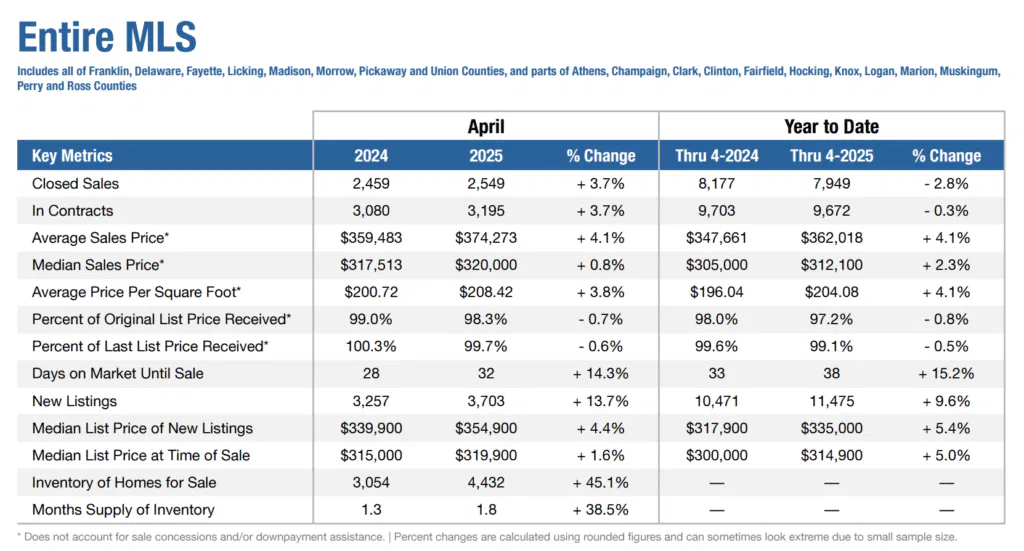 The Columbus Ohio real estate market is experiencing remarkable momentum, with available homes jumping 45% compared to last year and home sales climbing 3.7% in April, according to the latest data from the Columbus & Central Ohio Regional Multiple Listing Service.