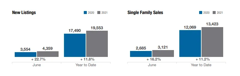 For the first half of 2021, home sales are also at a record high of 16,033 and 12.6 percent higher than last year according to the Columbus REALTORS® Multiple Listing Service.
