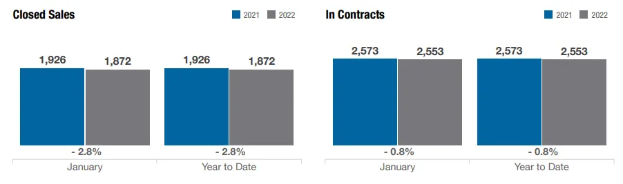 Following a record-breaking year, January’s housing activity fell flat as new listings, contracts and home sales dropped below those of 2021.