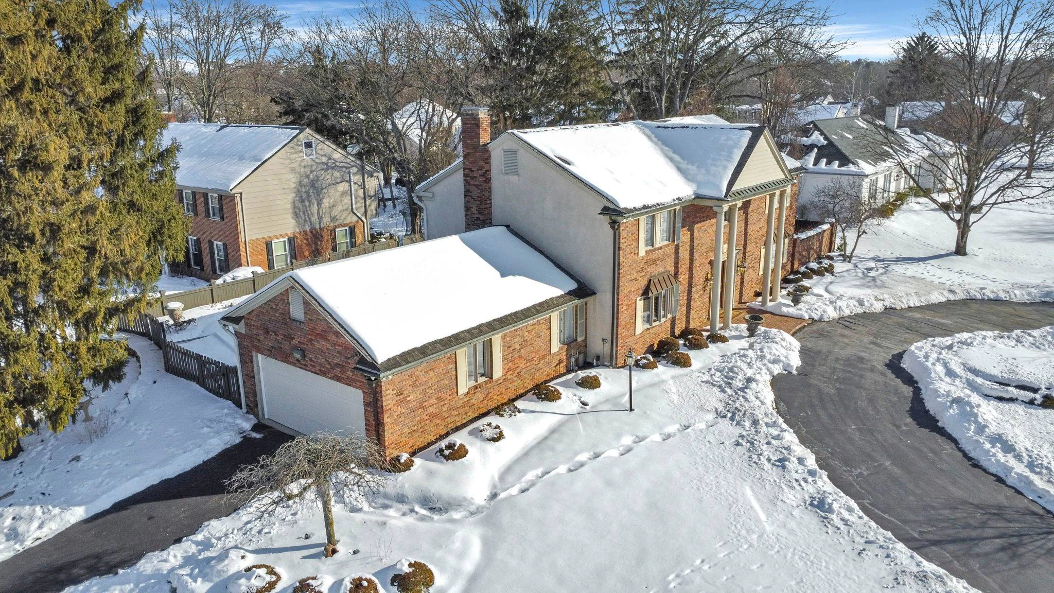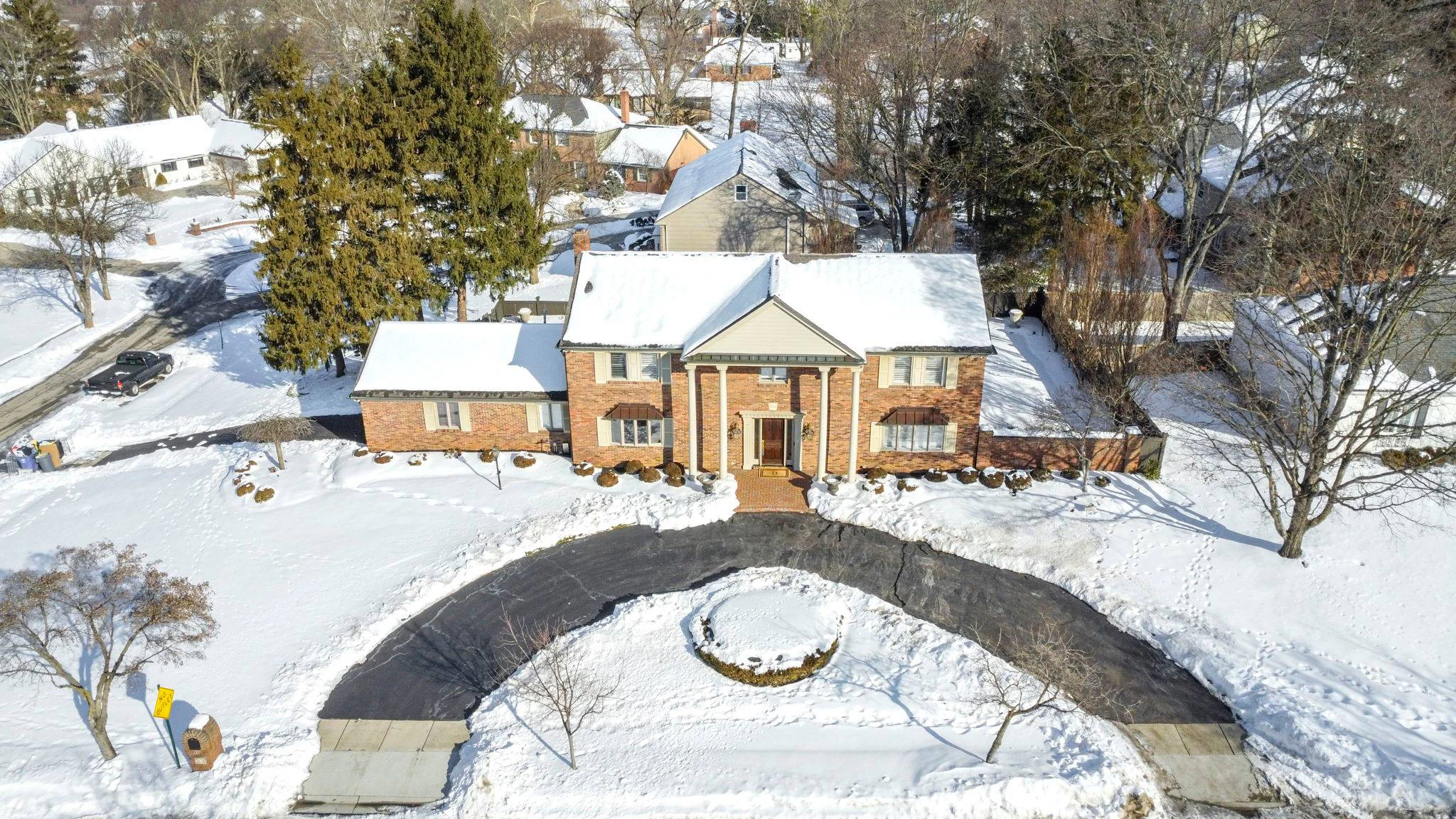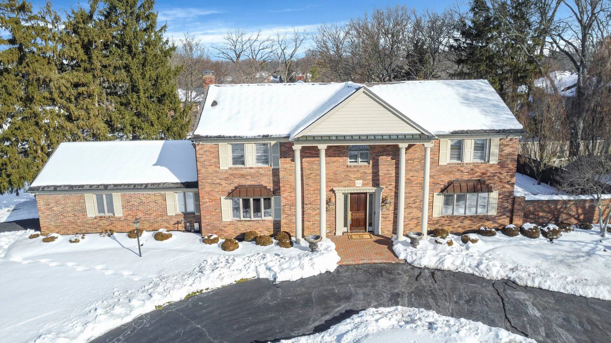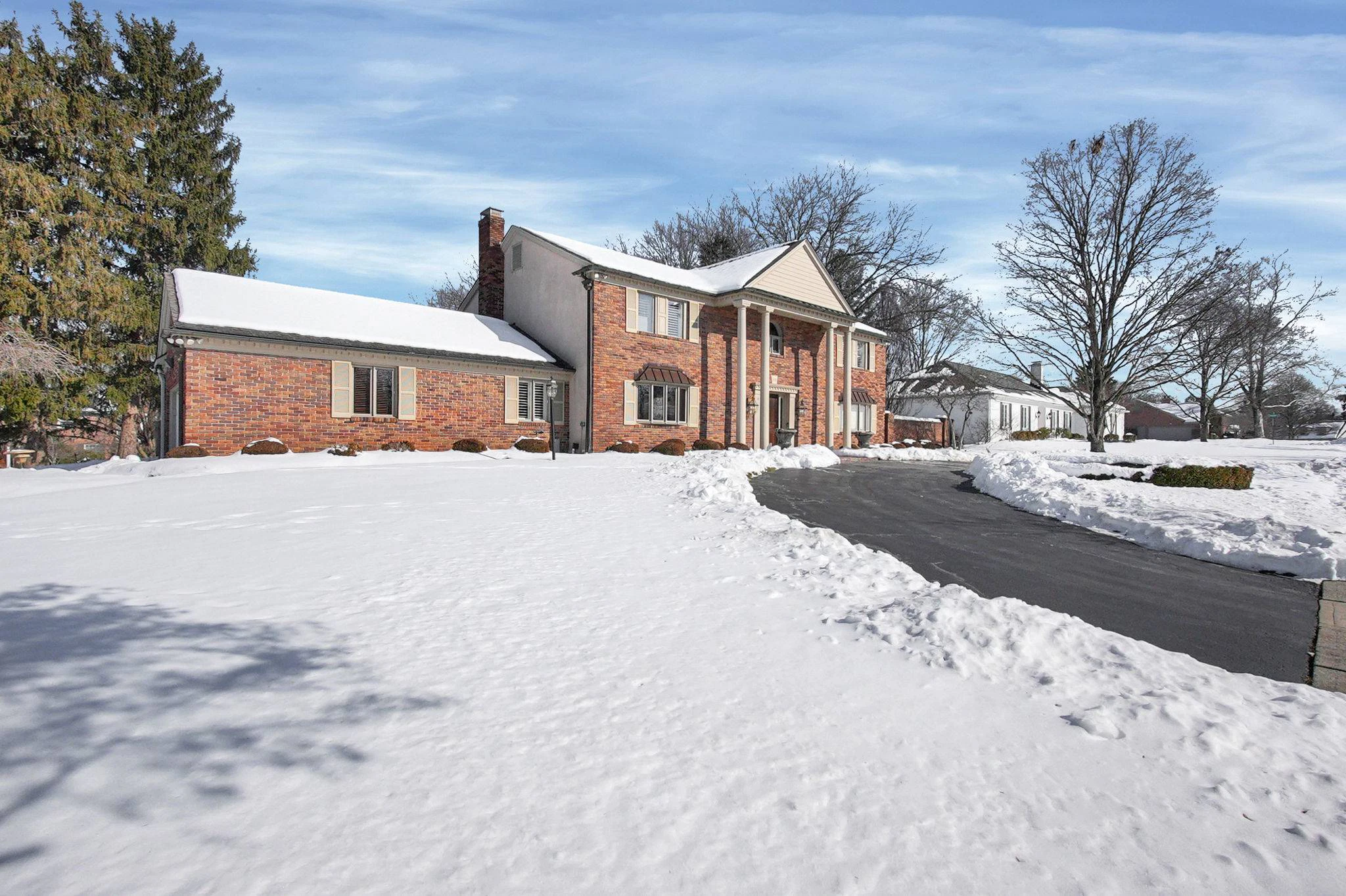 Details: Stately brick two-story home with classic curb appeal featuring a circular driveway, front fountain, and fenced yard. Offering approximately 3,144 sq ft, this home includes 4 bedrooms, 3.5 baths, hardwood floors, a grand bridal staircase, first-floor office, and convenient first-floor laundry. The open floor plan highlights a spacious living room, family room with wet bar, and well-appointed kitchen with island and ample cabinetry. Finished lower level provides additional flexible living or recreation space. Ideally located near parks, schools, shopping, restaurants, OSU, and Riverside Hospital. Move-in ready.