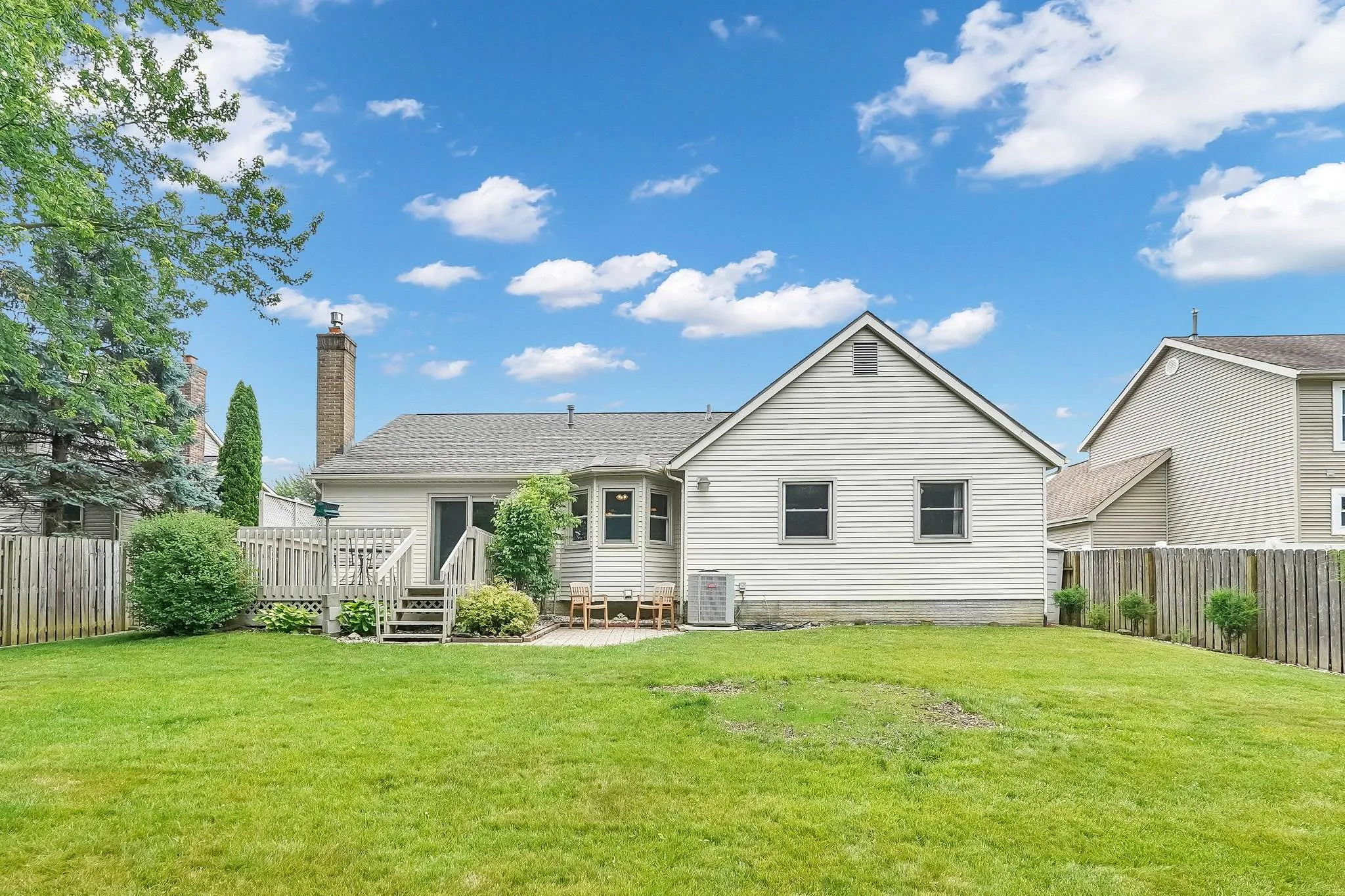 Details:Â Make this lovely ranch your own! 1,523 sq.ft.-neutral decor-3 bedrooms-2 full baths. Well maintained and built by Virginia Homes. Large basement with poured foundation. Private lot with fencing-View of woodlands from deck and patio. Roof was replaced in 2020.