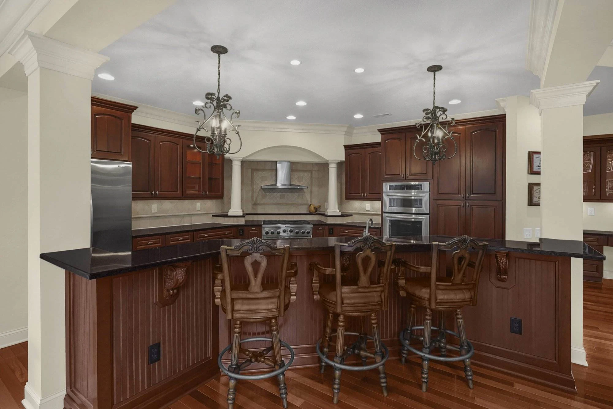 Inside you’ll find an open floor plan with both walk out lower family room and lower level. Beautiful built-ins in the great room and throughout the home, hardwood floors, two fireplaces, huge Owner’s suite, wet bar, two offices, too much more to list. Dublin Schools. A truly exceptional home!