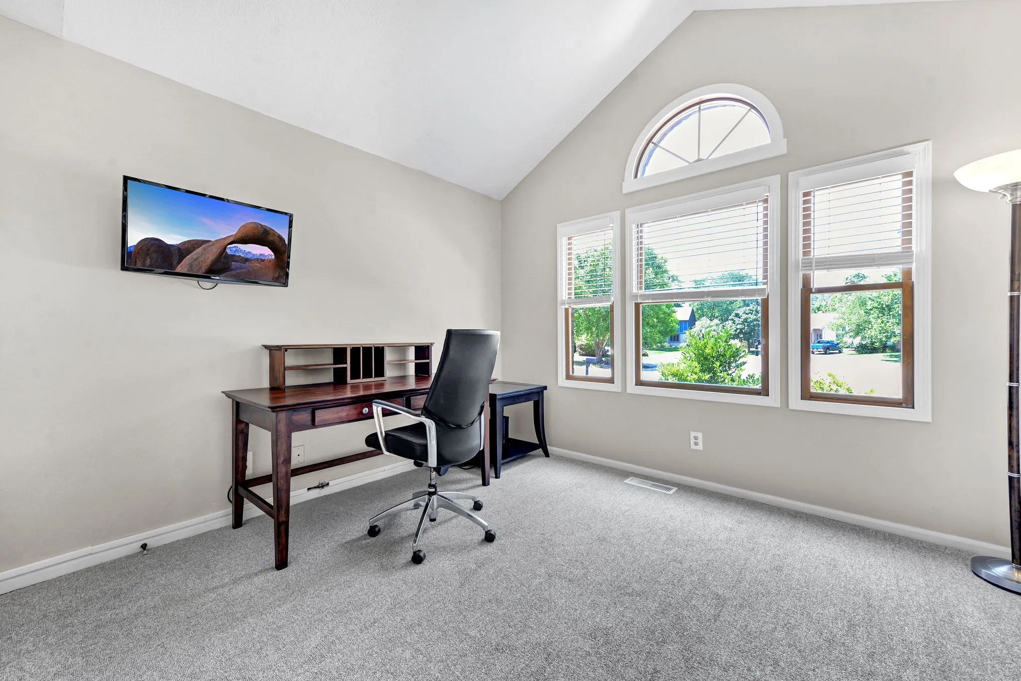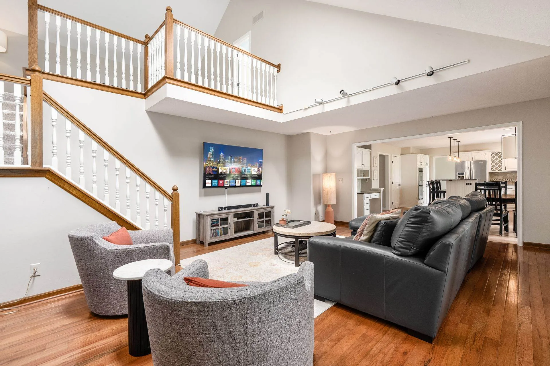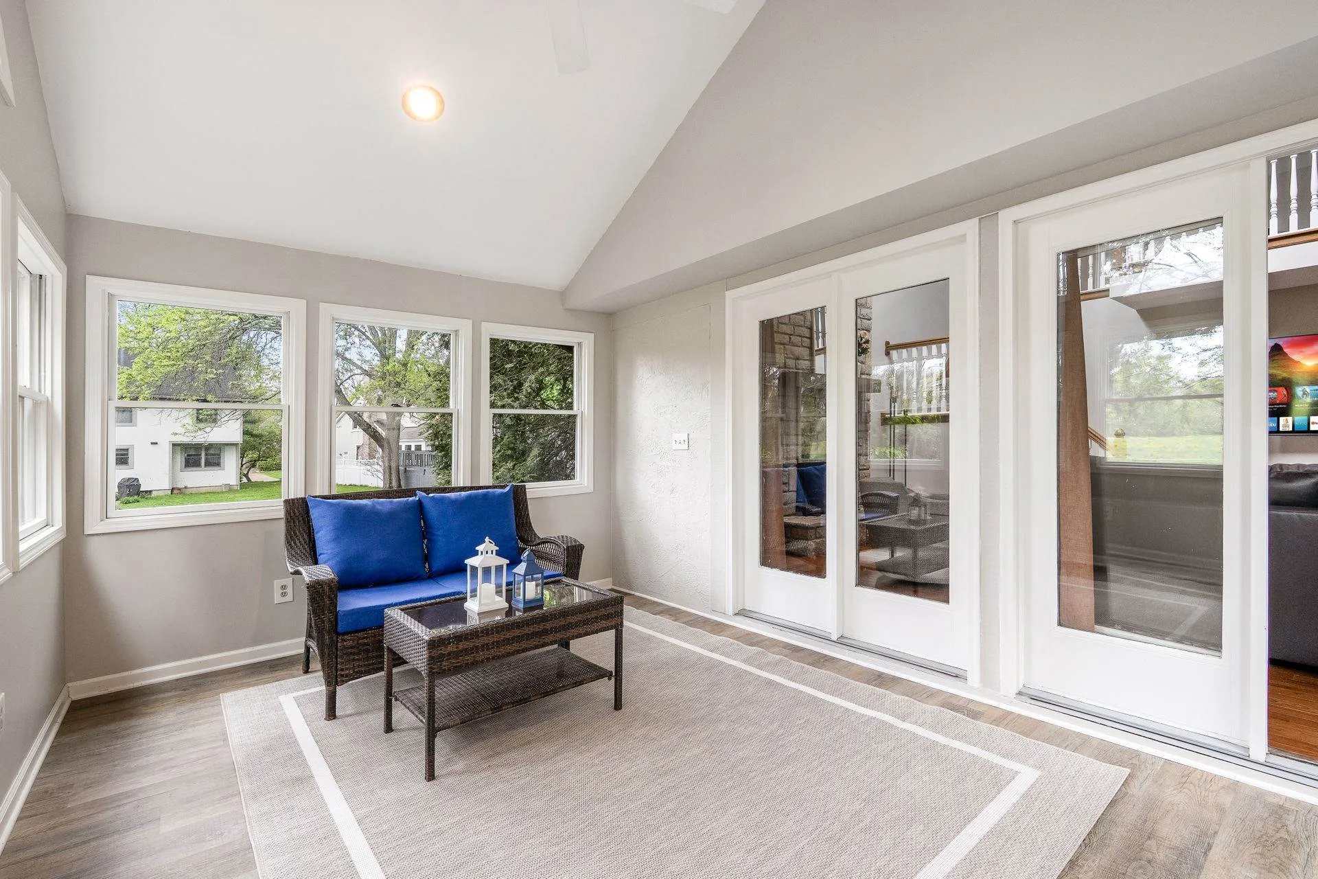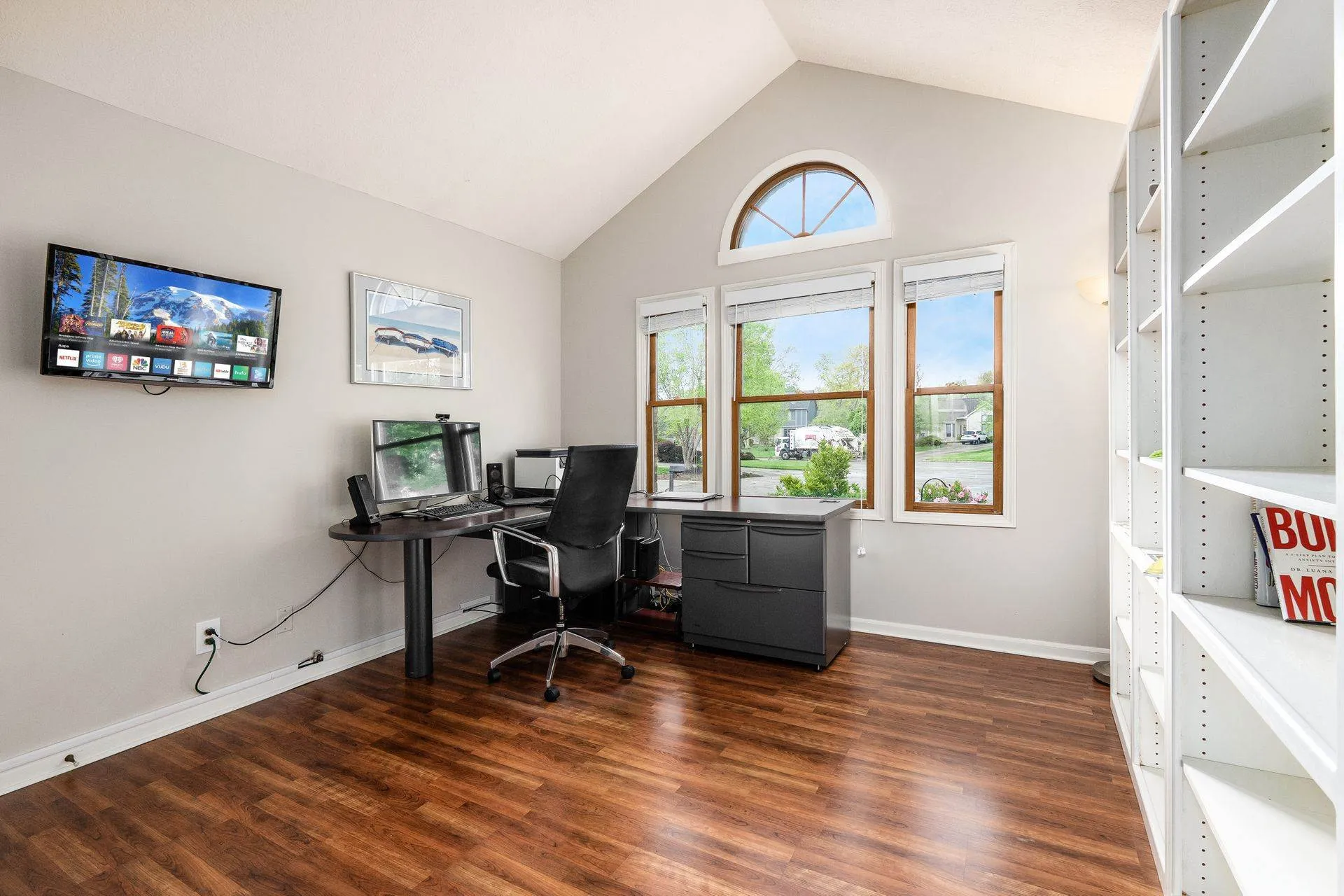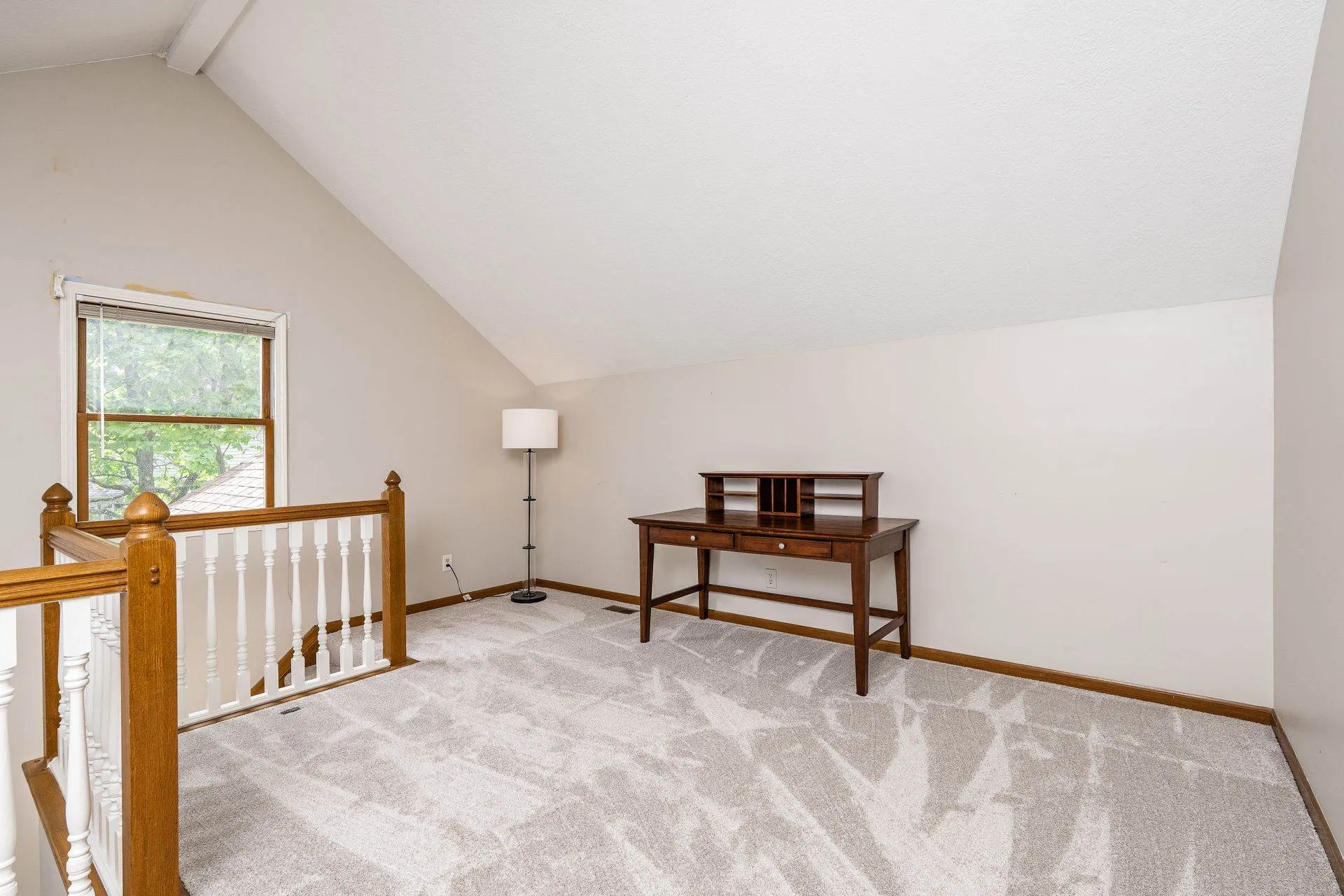 Enjoy relaxing in the charming three-season room or grilling on the back deck with scenic views. The first floor includes a private home office, laundry room, and a large open great room with vaulted ceilings, cozy fireplace, and abundant natural light. Hardwood floors flow through the living and dining rooms, while the kitchen features white cabinetry, quartz countertops, and a sunny breakfast area. Staircase from Great Room leads to second floor loft offering a perfect spot for a second office, reading nook, or computer space. Large Southeast-facing backyard is ideal for outdoor activities. Additional highlights and updates include; a rare three-car garage for this community, Kitchen appliances (2016), exterior paint (2020), deck painted (2024), updated interior paint (2022 and 2024), new carpet (2024), new HVAC system (2024), and a water heater (2023).Â