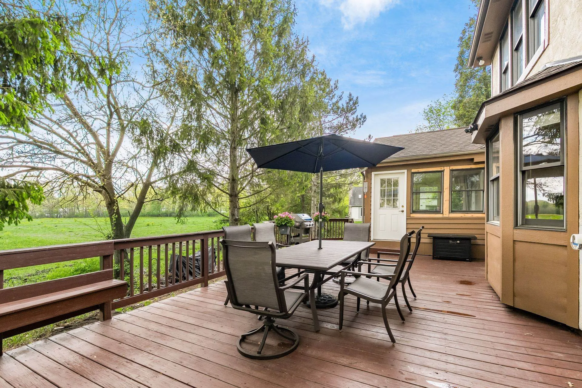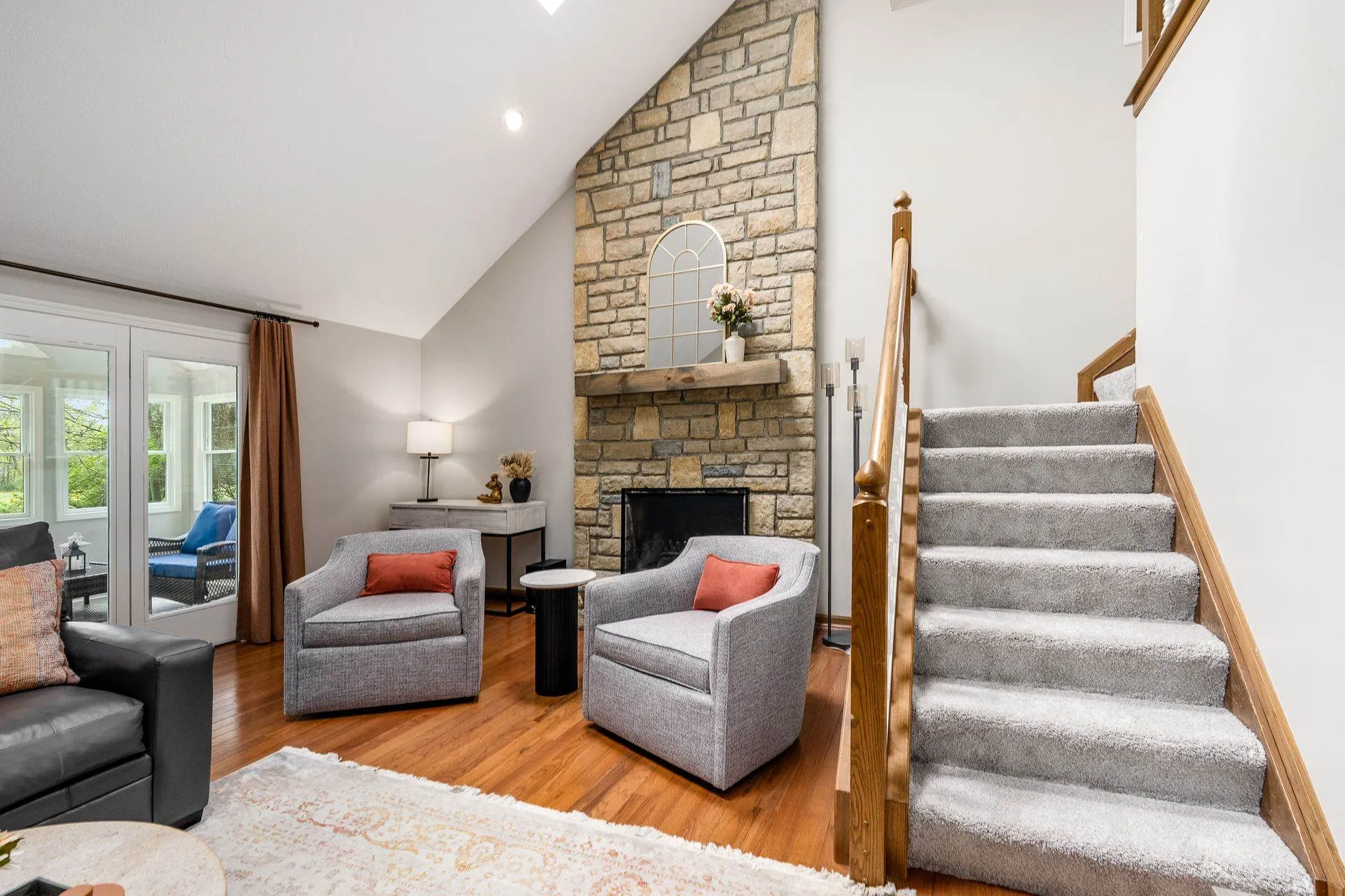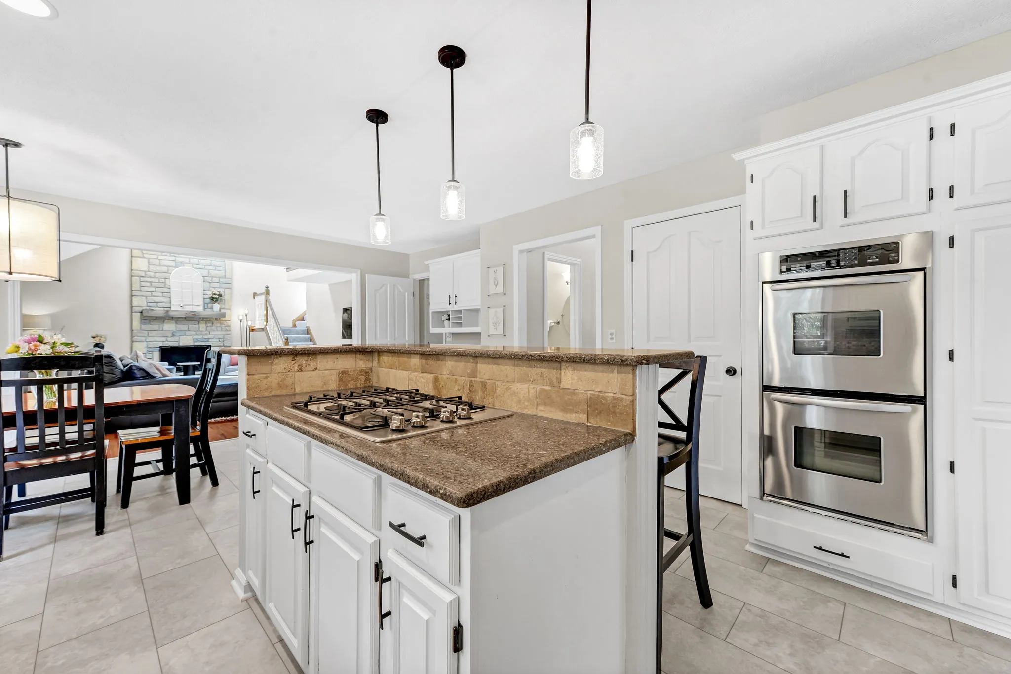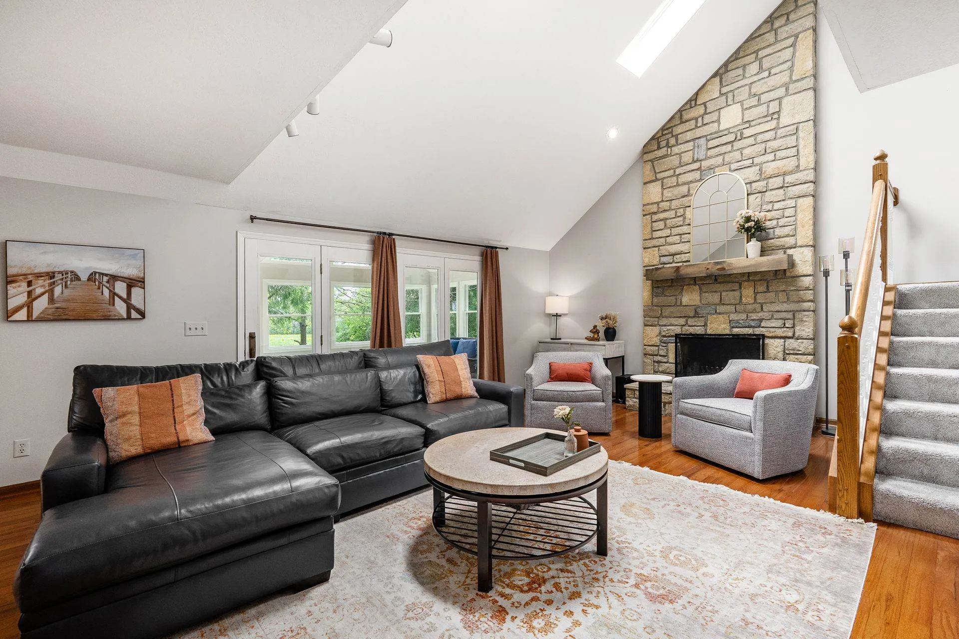 Enjoy relaxing in the charming three-season room or grilling on the back deck with scenic views. The first floor includes a private home office, laundry room, and a large open great room with vaulted ceilings, cozy fireplace, and abundant natural light. Hardwood floors flow through the living and dining rooms, while the kitchen features white cabinetry, quartz countertops, and a sunny breakfast area. Staircase from Great Room leads to second floor loft offering a perfect spot for a second office, reading nook, or computer space. Large Southeast-facing backyard is ideal for outdoor activities. Additional highlights and updates include; a rare three-car garage for this community, Kitchen appliances (2016), exterior paint (2020), deck painted (2024), updated interior paint (2022 and 2024), new carpet (2024), new HVAC system (2024), and a water heater (2023).Â